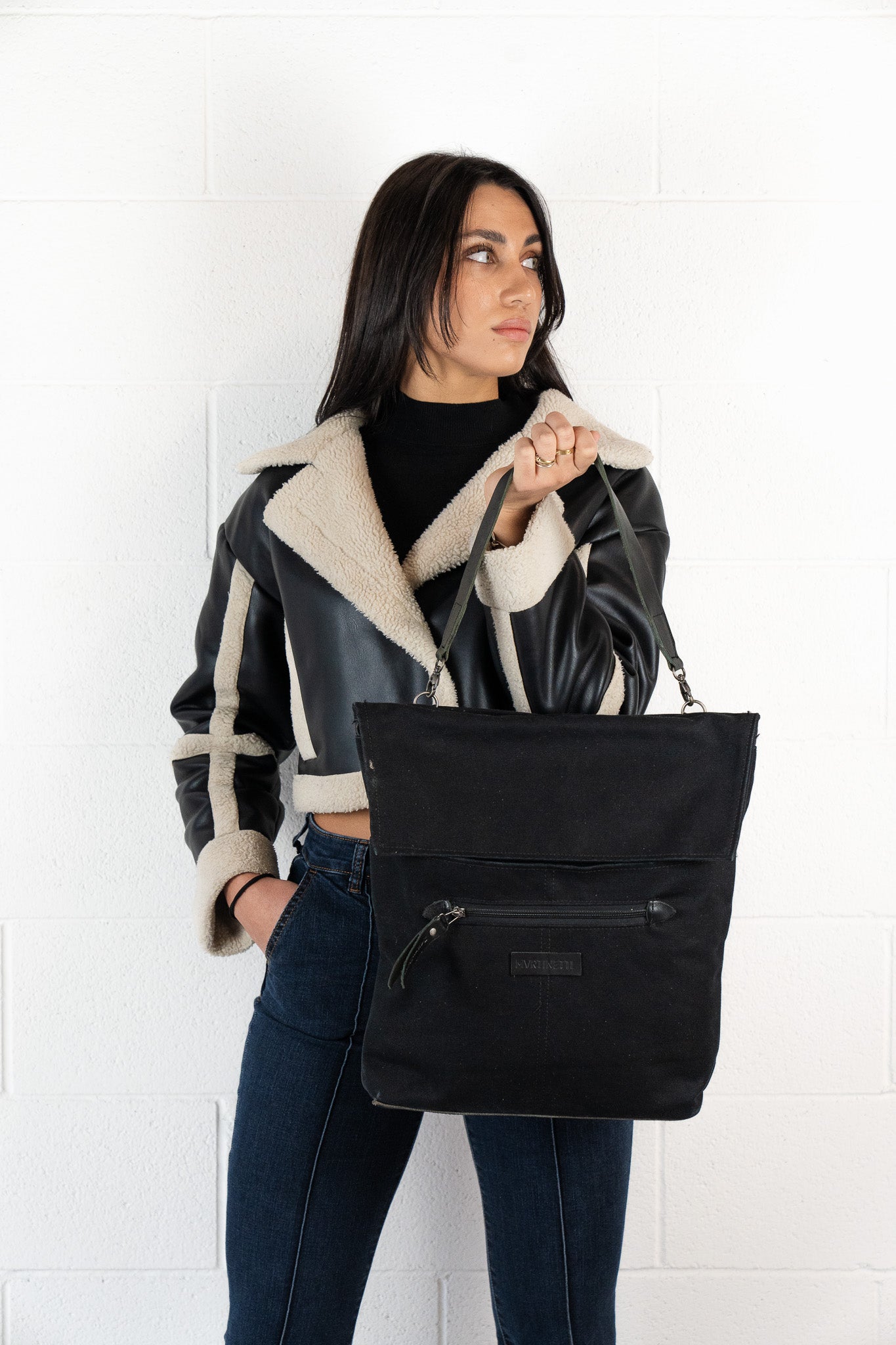 Cerchi un accessorio pratico e versatile? Isa è la scelta perfetta: una borsa zaino sempre pronta a seguirti in tutti i tuoi impegni e, perchè no, anche nel tempo libero. Isa è una borsa zaino in tela di cotone. Il manico rimovibile ti permette di portarla a spalla. Con la cinghia più lunga regolabile e rimovibile, puoi scegliere se indossarla come borsa a tracolla o come zainetto: ti basta inserire la cinghia nel passante posteriore. Il manico, la tracolla e il fondo sono realizzati in cuoio. la chiusura è assicurata da una cerniera coperta dalla patta di tessuto. Sul lato frontale sono posizionate due tasche, una con cerniera e l'altra con bottone, mentre sul retro un'altra tasca chiusa con bottone.